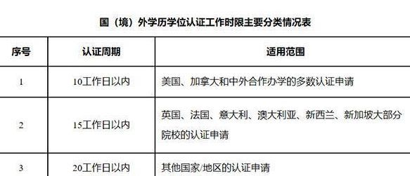 国(境)外学历学位认证工作时限主要分类情况表